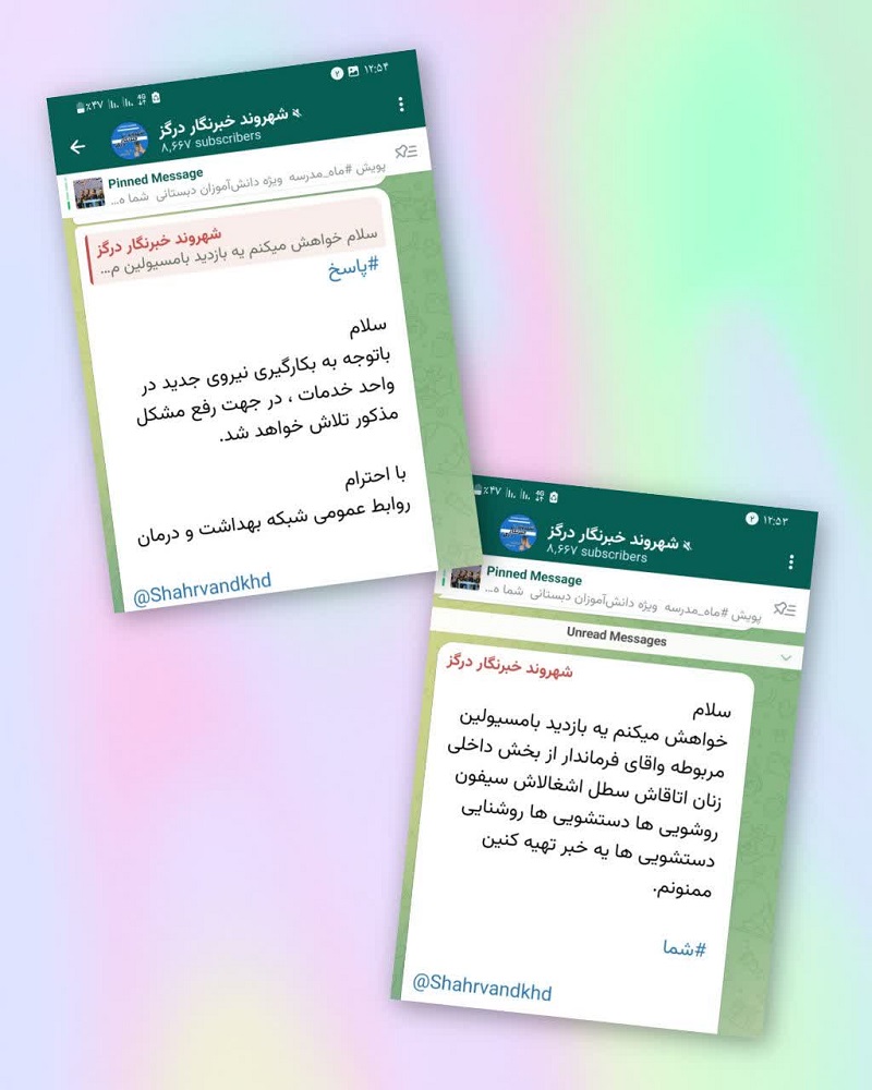 MUMS انعکاس عملکرد شبکه بهداشت و درمان درگز 06 مهر 1404 بازدید: 56 امتیاز: ( 1 Rating ) پاسخگویی واحد روابط عمومی به شکایت های مردمی در فضای مجازی در مهر ماه چاپ امتیاز کاربران لطفا رای دهید رای 1 رای 2 رای 3 رای 4 رای 5 عکس شبکه های اجتماعی عکس شبکه های اجتماعی عکس شبکه های اجتماعی
